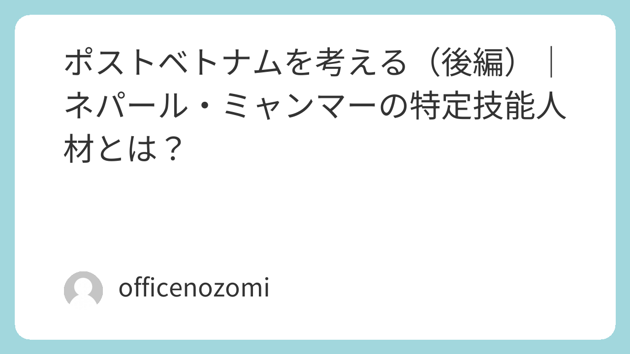 前回は、「ポストベトナムを考える(前編)」として、インドネシアとフィリピンについて触れました。